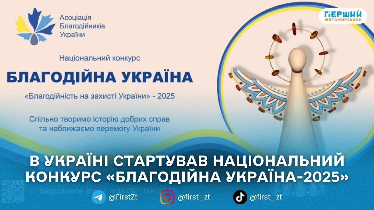 В Україні оголосили прийом заявок на 19-й Національний конкурс «Благодійна Україна-2025», який уже вчетверте проходить під девізом «Благодійність на захисті України». Організатори відзначають найкращих благодійників, волонтерів, бізнес і доброчинні ініціативи, що допомагають країні в умовах повномасштабної війни.