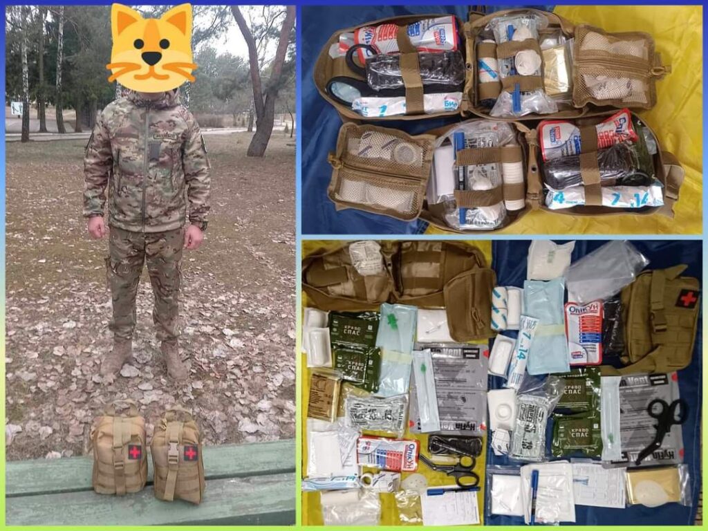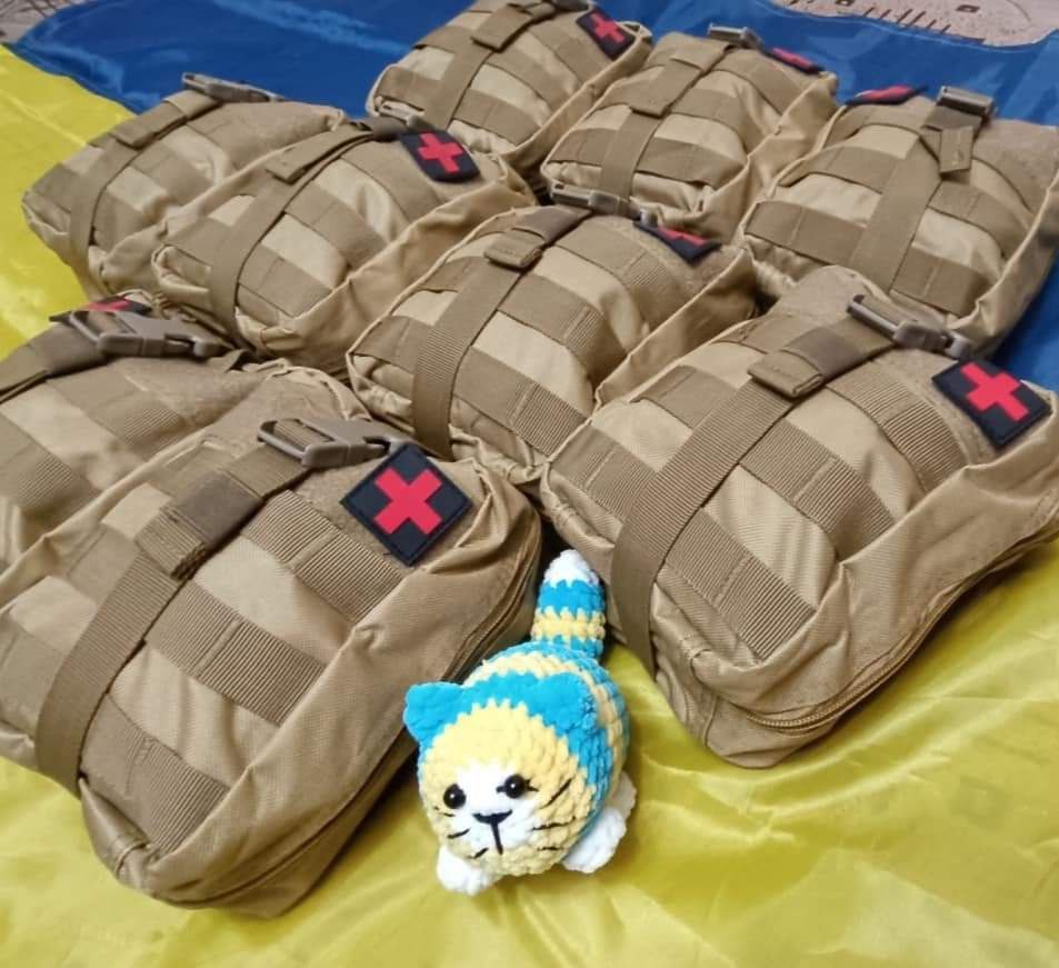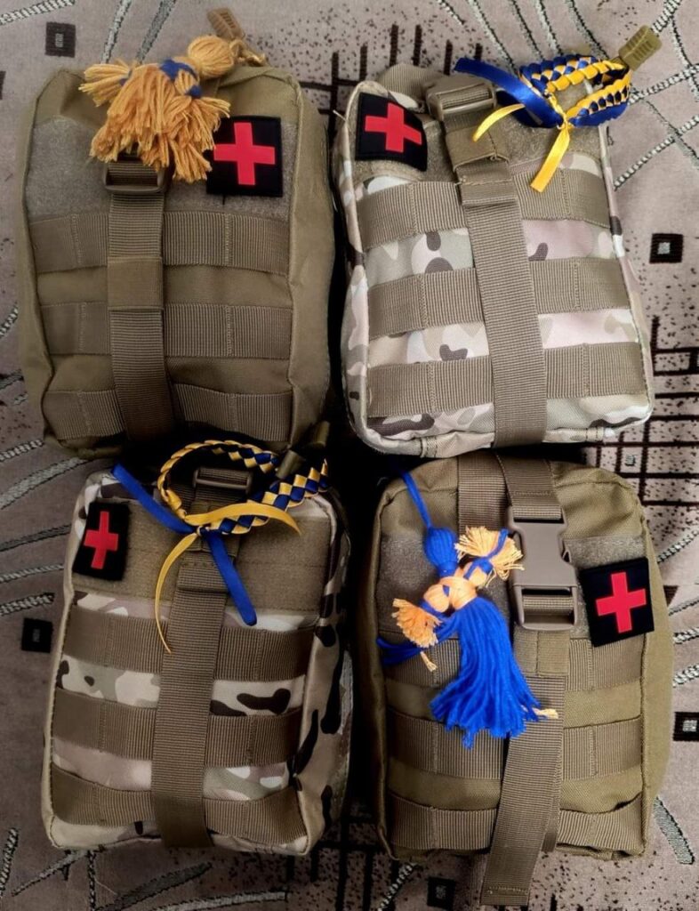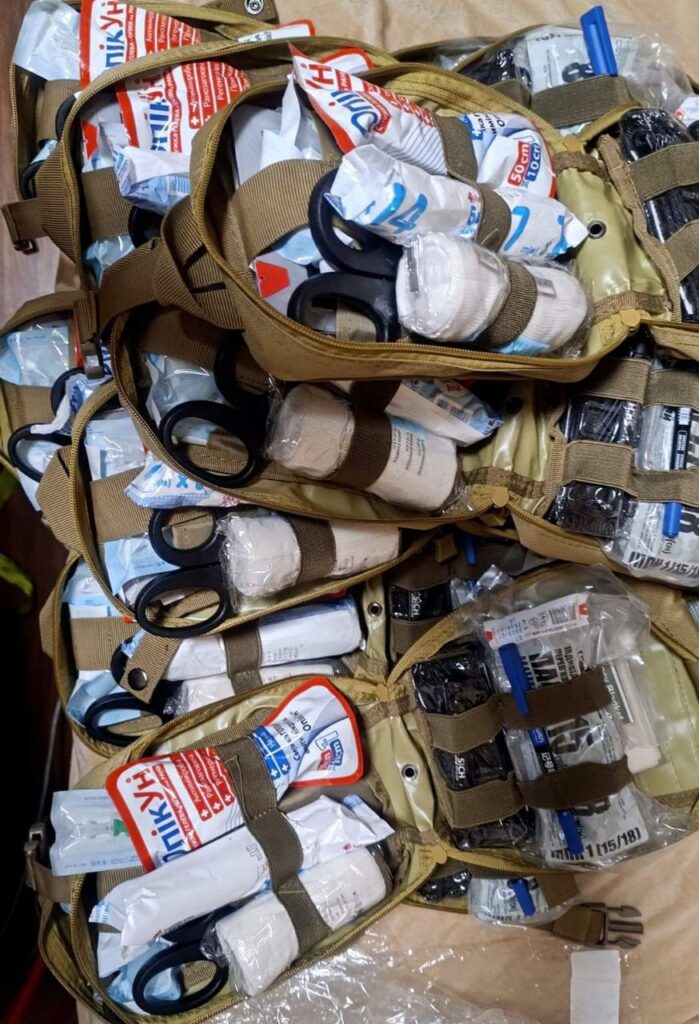 «Собівартість нашої гарно укомплектованої аптечки – приблизно 2600 гривень. Інколи виходить навіть дешевше, бо частина компонентів (бинти, серветки, пластири та інші дрібнички) надходить разом з гуманітарними вантажами, тож кошти на це додатково не витрачаються. Звичайно, дорогі компоненти – турнікети, оклюзійні наліпки, залишаються дорогими і ми це купуємо, залучаючи кошти із донатів. Зокрема, у мене є дві карти, на які проводжу волонтерські збори. От перша – це збір коштів на авто, дрони і так далі, а друга – щось менш масштабне, може бути основа на сітки, компоненти для аптечок, – пояснює волонтерка Галина Кострикіна. – Купуємо спеціально підсумки. Турнікети беремо «SICH» і «Дніпро» – вони сертифіковані в Україні. У купованих аптечках зазвичай один турнікет та один гемостатик, ми вкладаємо по дві одиниці кожного. Наша аптечка укомплектована максимально. Туди входить 20 позицій (турнікет, рукавички, кровоспинний бинт, ізраїльський бандаж або індивідуальний перев’язувальний пакет, назофарингеальний повітропровід, оклюзійна наліпка, декомпресійна голка, термоковдра, трикутна косинка, бинт або наліпки «ОпікУн», бинти звичайні, серветки стерильні, щиток на око, рill-pack (пігулки для поранених), рулонний пластир та інше). Це відповідно до протоколу як має надаватися допомога. Варто зазначити, що ми вже напрацювали базу українських виробників, у яких купуємо комплектуючі – турнікети, назофарингеальні трубки (імпортна може коштувати 350-400 гривень, а ми купуємо за 35), декомпресійні голки (можуть бути за 600 гривень, ми купуємо українські за 50, але вони нормальної якості). Те саме – ізраїльський бандаж, який може коштувати 350 гривень, а ми купуємо трохи більше ніж за 100 гривень українську «Білосніжку». Втім, оклюзійні наліпки – виключно американські, хоча є українські, та у нас є певні питання до їх якості. Що стосується гемостатика, то в Україні роблять «Кровоспас» і волонтери можуть купити його всього за 50 гривень. У готові аптечки, які можна придбати, класти його не мають права, бо він не для продажу (безкоштовно чи добровільний внесок для покриття основної вартості). Ось так, власне, і формується підбір компонентів та загальний бюджет нашої аптечки. Це все з урахуванням досвіду та відгуків від самих військових та медиків. Я завжди кажу, що правильно укомплектовані аптечки можуть врятувати життя бійця при пораненні, але нехай краще не знадобиться і всі повертаються цілими та неушкодженими з поля бою».