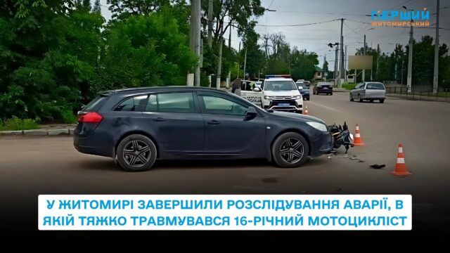 У Житомирі завершили досудове розслідування дорожньо-транспортної пригоди, яка сталася 13 червня у мікрорайоні Крошня. Тоді водій легковика зіткнувся з мотоциклом, унаслідок чого тяжкі травми отримав 16-річний керманич двоколісника.