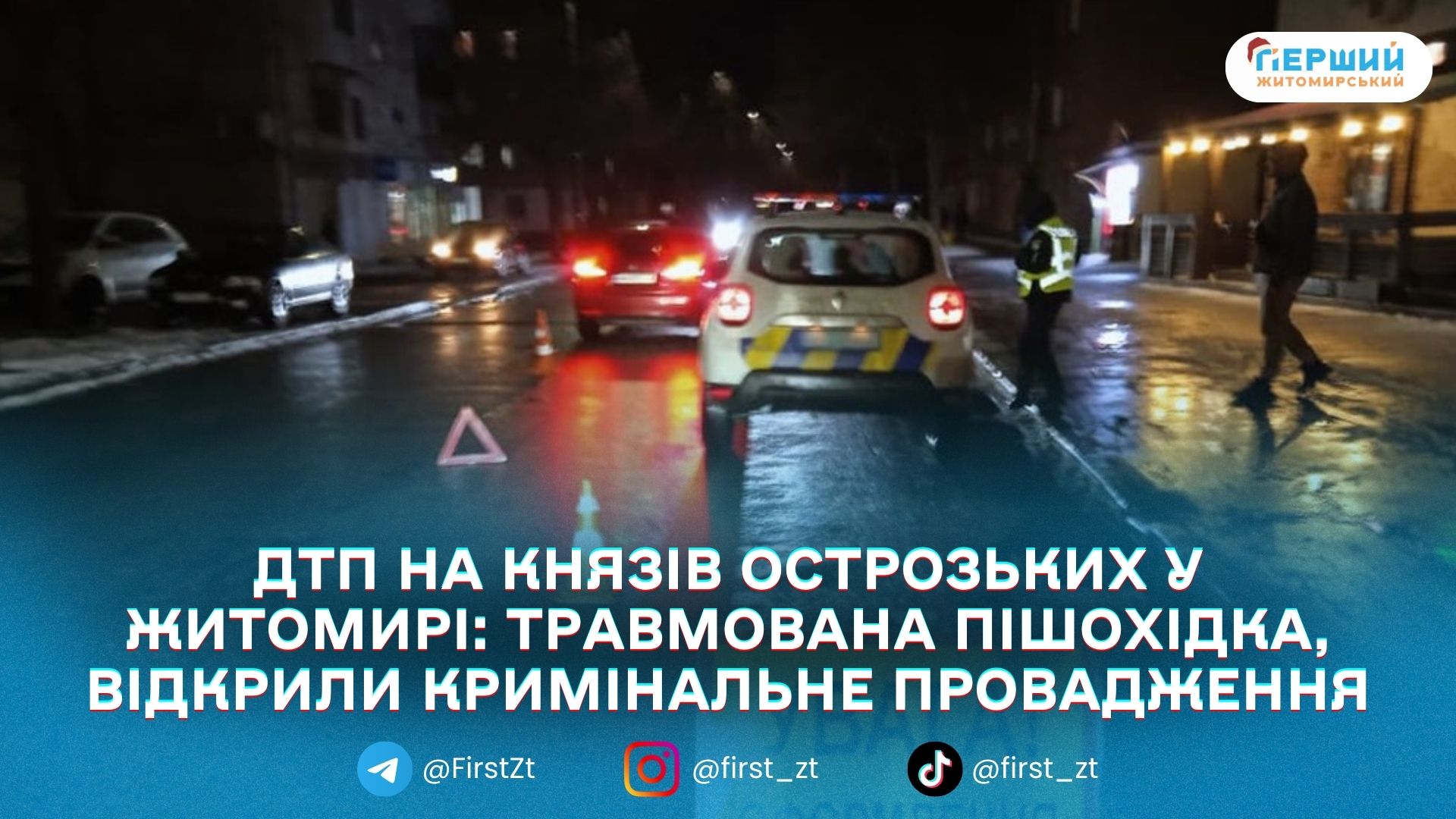 У Житомирі внаслідок ДТП травмувалася пішохідка. Аварія сталася 26 грудня близько 18:15 на вулиці Князів Острозьких. Про це повідомили в ГУНП у Житомирській області.