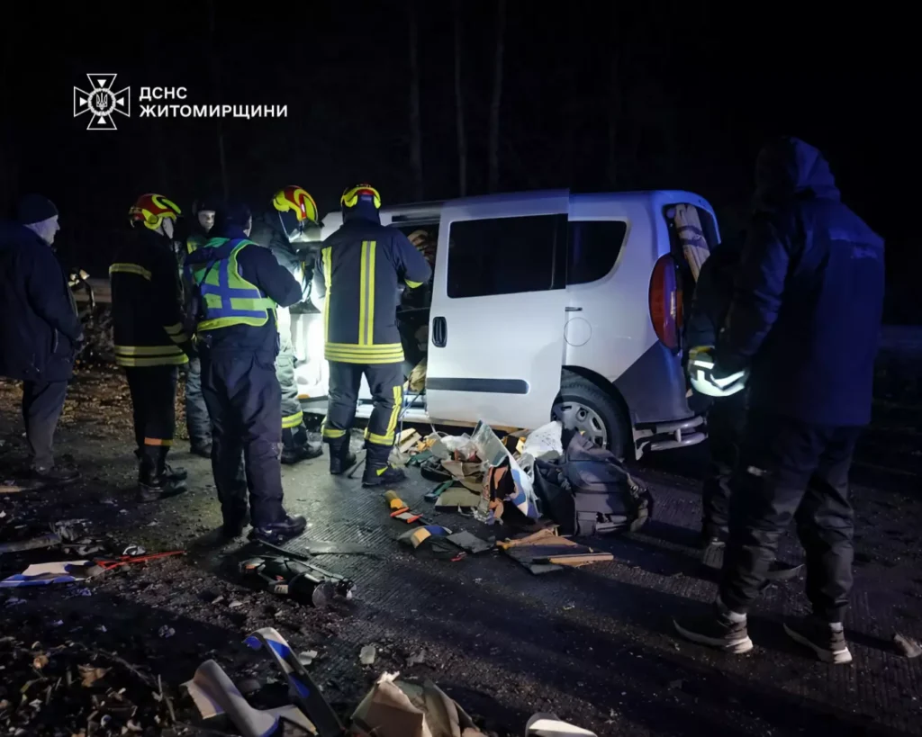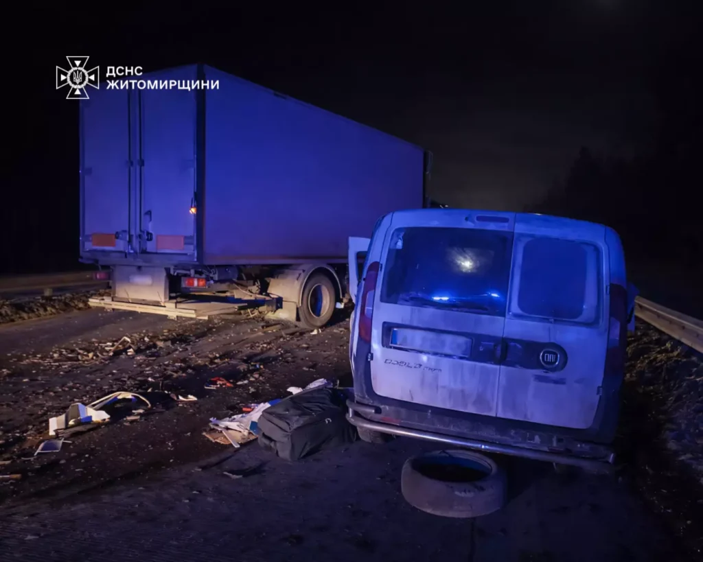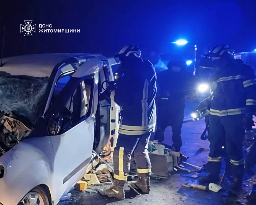 ДТП у Житомирському районі сталася вранці 3 лютого поблизу села Кам’янка за участю вантажівки та легкового автомобіля. Внаслідок зіткнення водія легковика затисло понівеченими конструкціями авто.