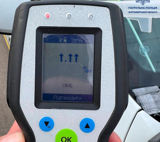 22 жовтня у Житомирі по вул. Чуднівській сталася ДТП – автомобіль Kia в’їхав у дерево. Як виявилося, 29-річний водій був нетверезий – Драгер не зміг показати результат сп’яніння чоловіка, оскільки перевищив позначку.