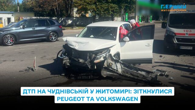 Близько 12:00 на перехресті вулиць Чуднівської та Шпаковської зіткнулися автомобілі Peugeot та Volkswagen. За попередньою інформацією, у ДТП є потерпілі. На місце події викликано медиків та слідчо-оперативну групу поліції.