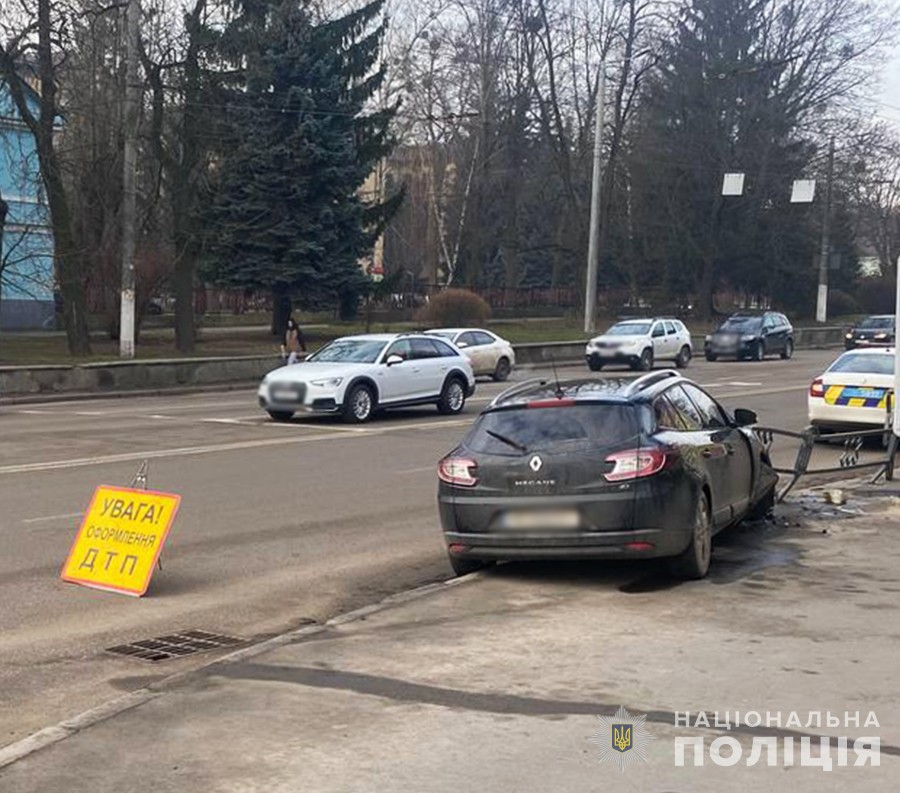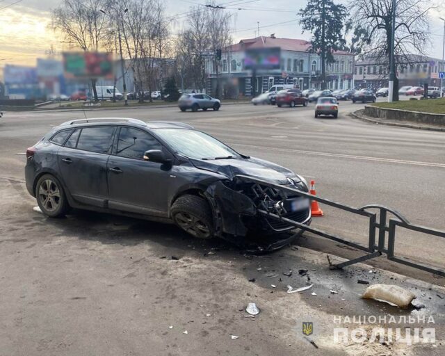 Попередньо встановлено, що 45-річна водійка автомобіля «Renault Megane», жителька Бердичева, не впоралася з керуванням на повороті. В результаті транспортний засіб виїхав за межі проїжджої частини та врізався в металевий паркан.