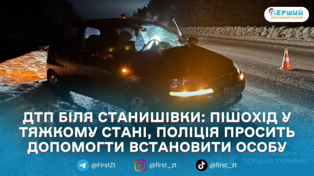 У передмісті Житомира ввечері 14 січня сталася ДТП, унаслідок якої тяжко травмувався пішохід. Аварія сталася близько 21:20 неподалік села Станишівка, повідомили в ГУНП у Житомирській області.