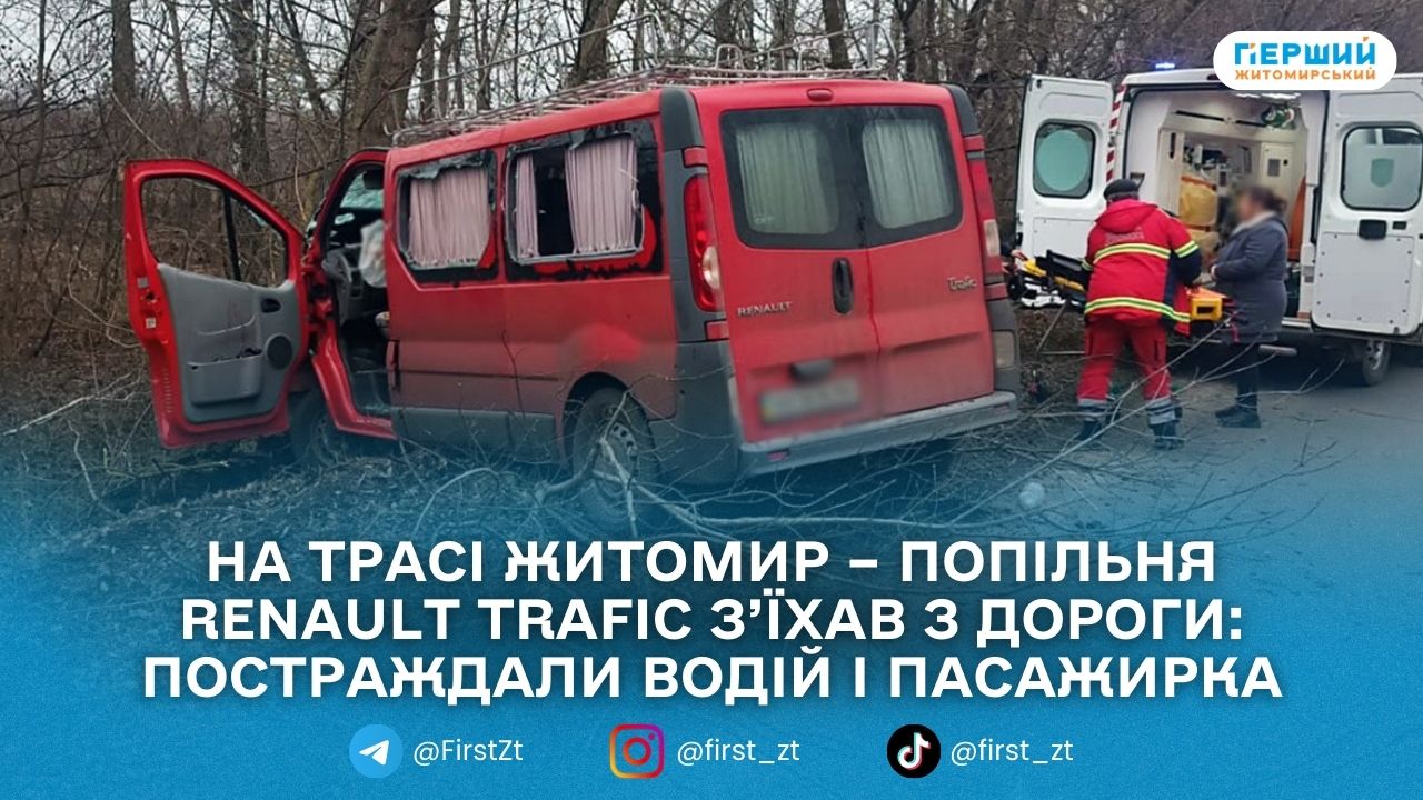 За попередньою інформацією, 59-річний житель Андрушівки, керуючи мікроавтобусом Renault Trafic у напрямку Житомира, не впорався з керуванням. Авто з’їхало з дороги та зіткнулося з деревом.