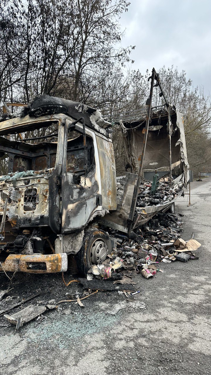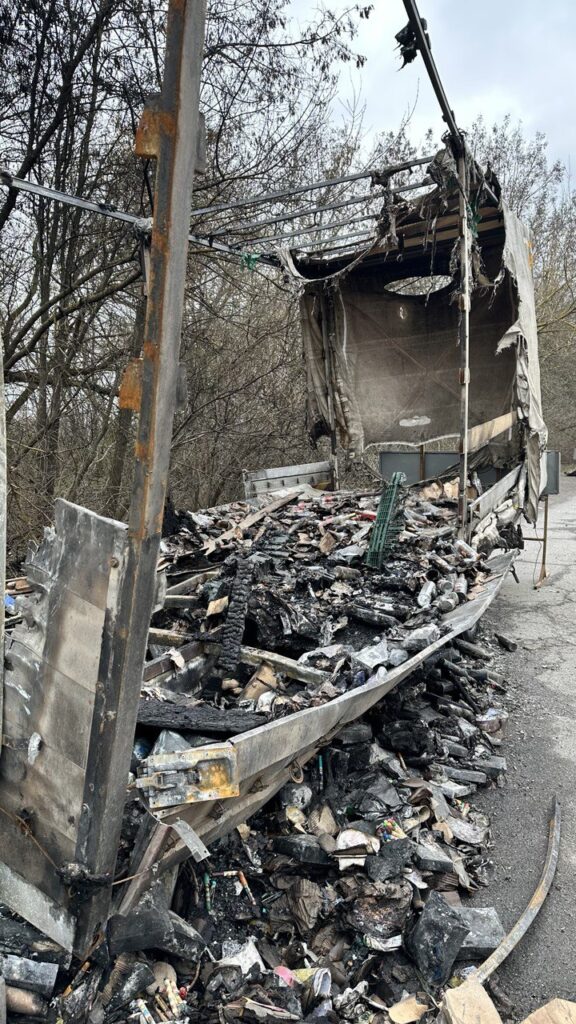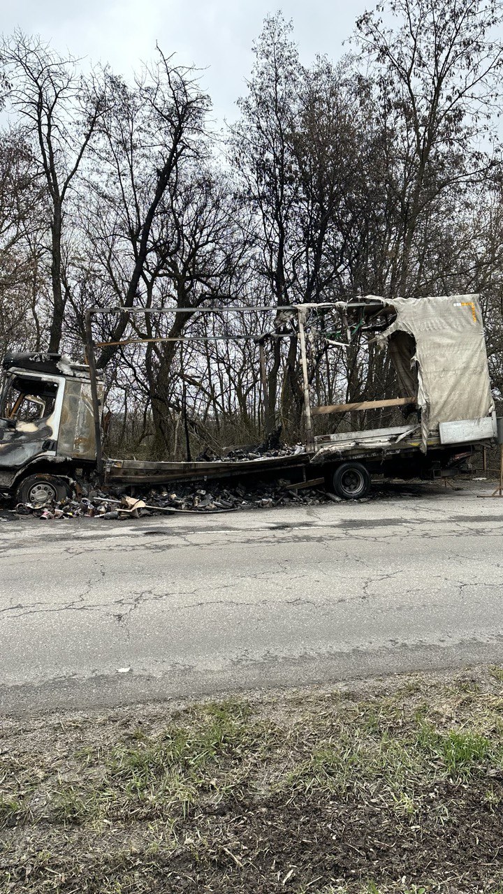Сташий інспектор пресслужби патрульної поліції Тетяна Носадчук поінформувала, що подія сталася 29 березня. Авто згоріло в результаті короткого замикання. Вантажівку повинен забрати власник, САД – прибрати її з прожджої частини, що і було зроблено службою.