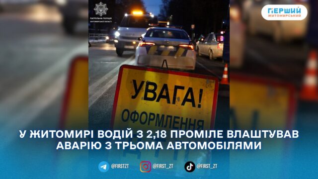 У Житомирі 10 березня на вулиці Вітрука сталася дорожньо-транспортна пригода за участю трьох автомобілів — Volkswagen, KIA та Opel. Про це повідомили в патрульній поліції Житомирської області.