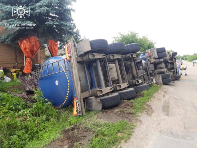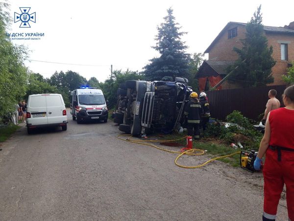 Вчора 2 липня поблизу села Швайківка, що у Бердичівському районі перекинулася вантажівка. Внаслідок аварії водія затиснуло між металевими конструкціями.