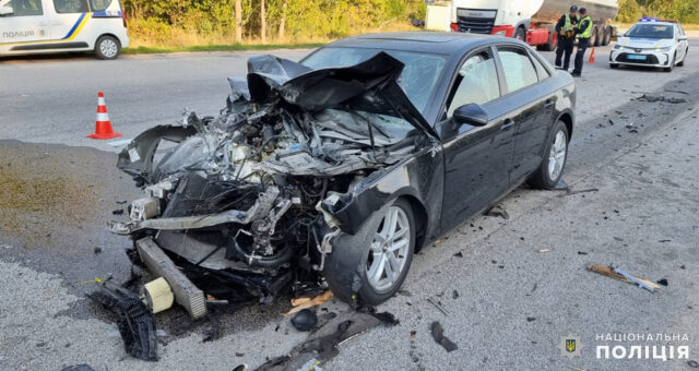 33-річна киянка на «Audi» в’їхала у вантажівку «ГАЗ» під керуванням 59-річного житомирянина. ДТП сталася 28 вересня увечері на автодорозі Київ-Чоп поблизу с. Юлянівки. Водійку госпіталізували.