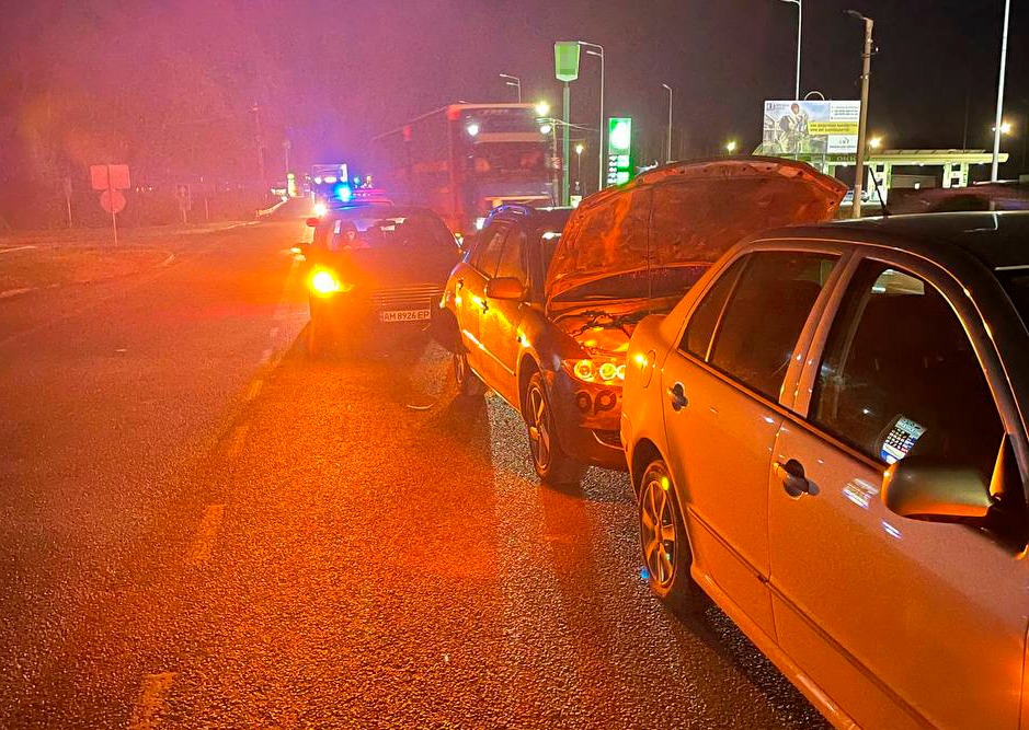 “4 січня близько 16:20 у с. Зарічанах на автодорозі Виступовичі-Житомир-Могилів-Подільський сталася ДТП за участі трьох автомобілів. Попутні легковики зіштовхнулись почергово. Попередньо, 27-річний водій автомобіля «Ford Fusion», не витримавши безпечну дистанцію, зіткнувся з «Mazda 6» під керуванням 36-річного вінничанина. Останній, у свою чергу, наїхав на «Škoda Fabia», водієм якої був житомирянин”, – йдеться в повідомленні.