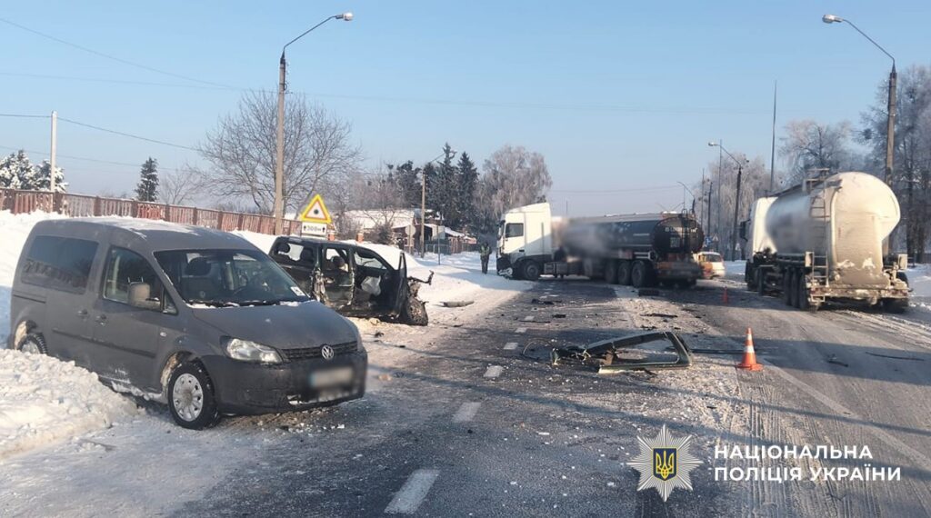 За попередньою інформацією поліції, відбулося зіткнення автомобілів DAF під керуванням 24-річного жителя Сумщини та Isuzu, яким керував 40-річний житель Тернопільщини. Після цього Isuzu за інерцією зіткнувся з мінівеном Volkswagen.