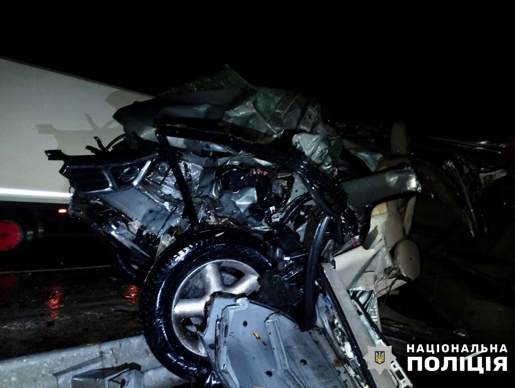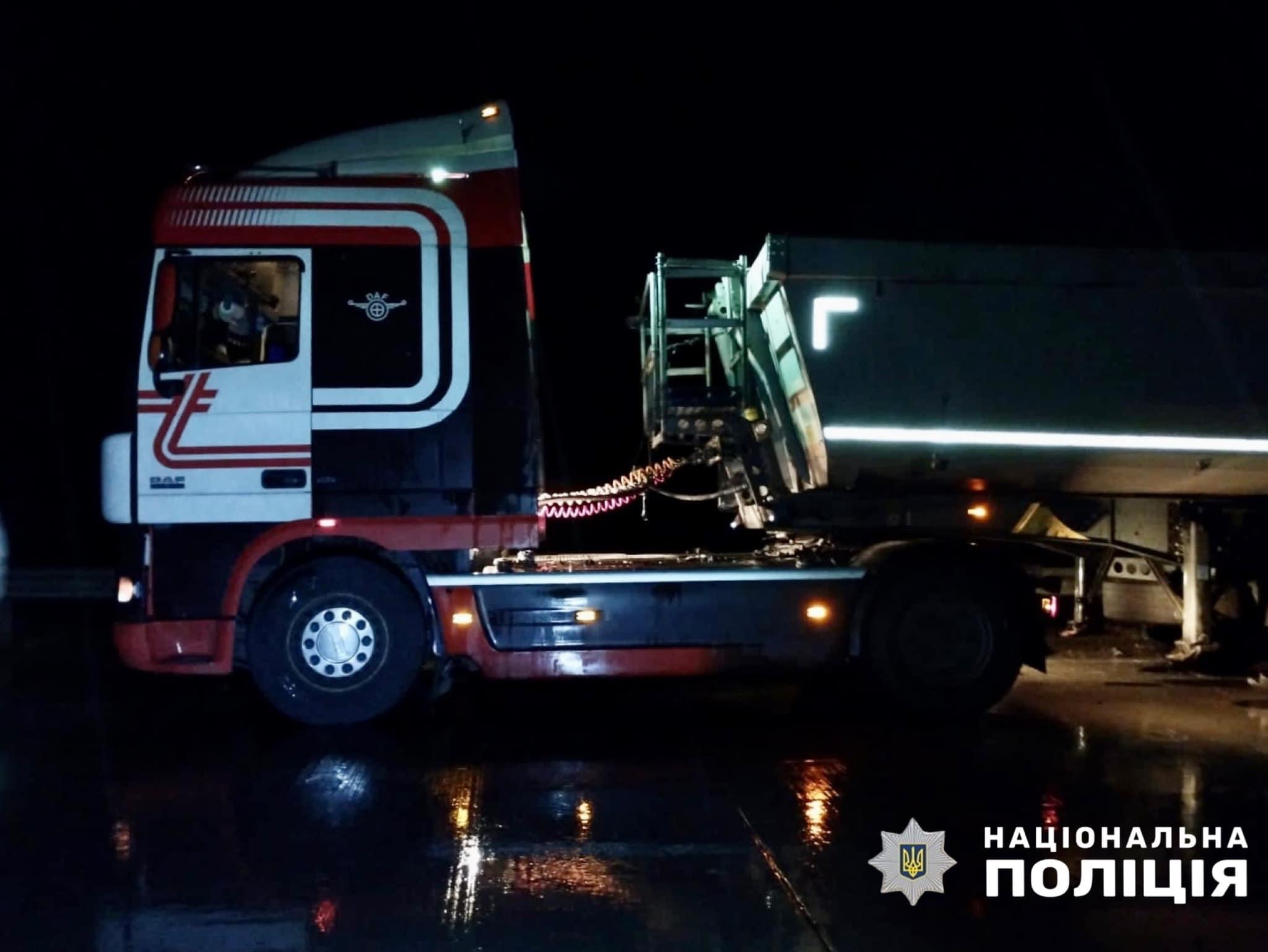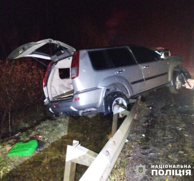 «29-річний водій автомобіля Nissan X-Trail, не впоравшись з керуванням, здійснив зіткнення з вантажним автомобілем DAF XF, яким керував 33-річний житель Київщини».