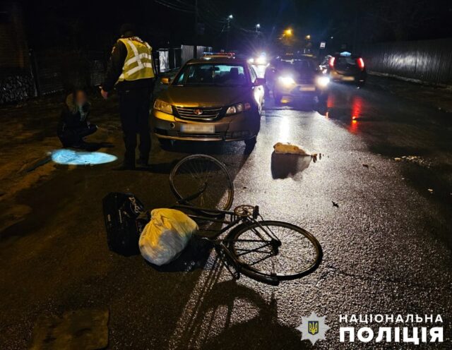 Попередньо, водійка автомобіля «Geely», 38-річна містянка, здійснила наїзд на жінку, яка у цей час перетинала автошлях, ведучи велосипед у руках. У результаті ДТП 80-річна бердичівлянка отримала травми та була ушпиталена до відділення інтенсивної терапії міської лікарні, – повідомляють у поліції.