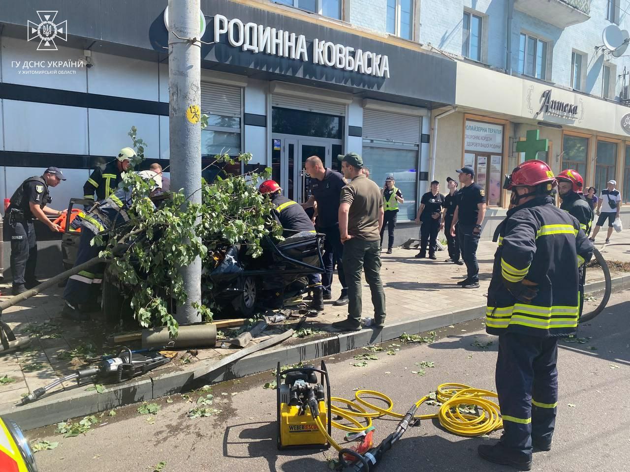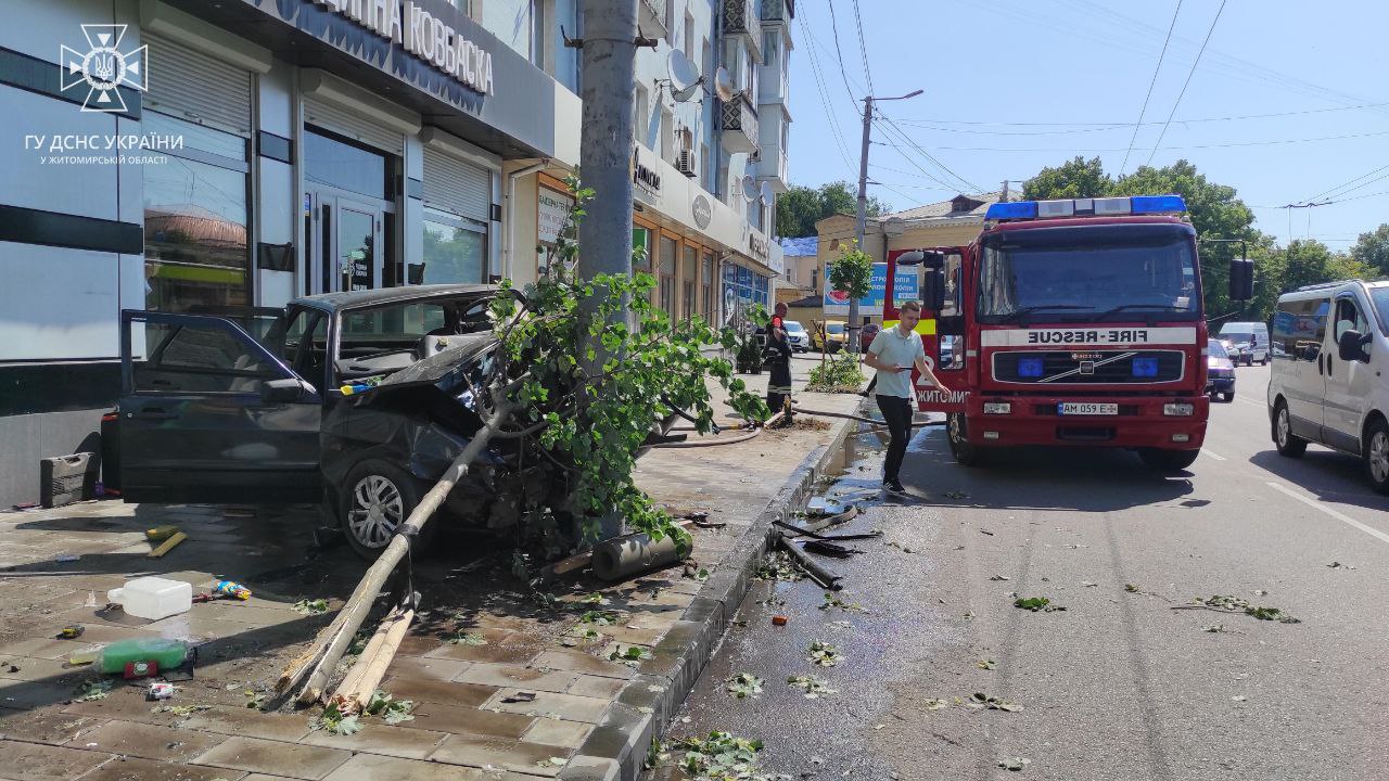 “04 липня 2023 року близько 10:25 до Служби порятунку «101» надійшло повідомлення, що необхідна допомога у вивільненні потерпілих внаслідок дорожньо-транспортної пригоди, яка сталася в центрі Житомира. На місці події рятувальники за допомогою пневматичного інструменту вивільнили із пошкодженої автівки водія, якого передали медикам, а з часом транспортували до лікувального закладу”.