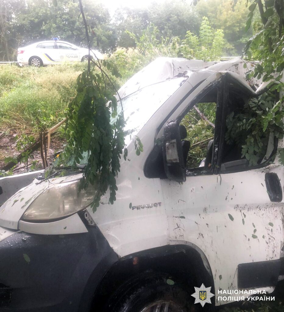 За попередньою інформацією поліції, зіткнулися автомобіль Volvo під керуванням 42-річної жительки Києва та мікроавтобус Peugeot, яким керував 49-річний мешканець Київщини. Від удару мікроавтобус з’їхав у кювет і перекинувся.