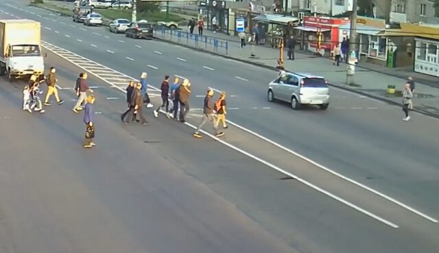 “26 серпня камерами відеоспостереження зафіксована ДТП за участю пішохода, що сталась о 19:34 на пішохідному переході, що на проспекті Миру, в районі вул. Героїв Десантників. Внаслідок ДТП постраждалий чоловік (79 років) отримав тілесні ушкодження”.