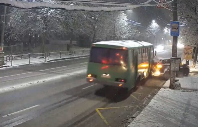 “Вчора 07 грудня о 17:03 камерами відеоспостереження зафіксована ДТП по вул. В.Бердичівська, біля зупинки громадського транспорту «вул. Довженко», що розташована навпроти СШ №33”.