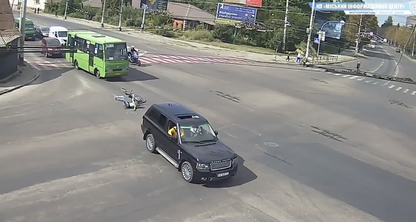 У Житомирі 4 вересня близько 14:40 год. позашляховик Range Rover збив дівчину-велосипедистку. ДТП сталася на перехресті вул. Покровської та проспекту Незалежності.