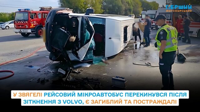За попередніми даними, автомобіль Volvo, за кермом якого перебував 22-річний житель Житомирського району, зіткнувся з рейсовим мікроавтобусом Mercedes-Benz. За кермом автобуса був 61-річний житель Довбиської громади. Унаслідок удару мікроавтобус перекинувся.