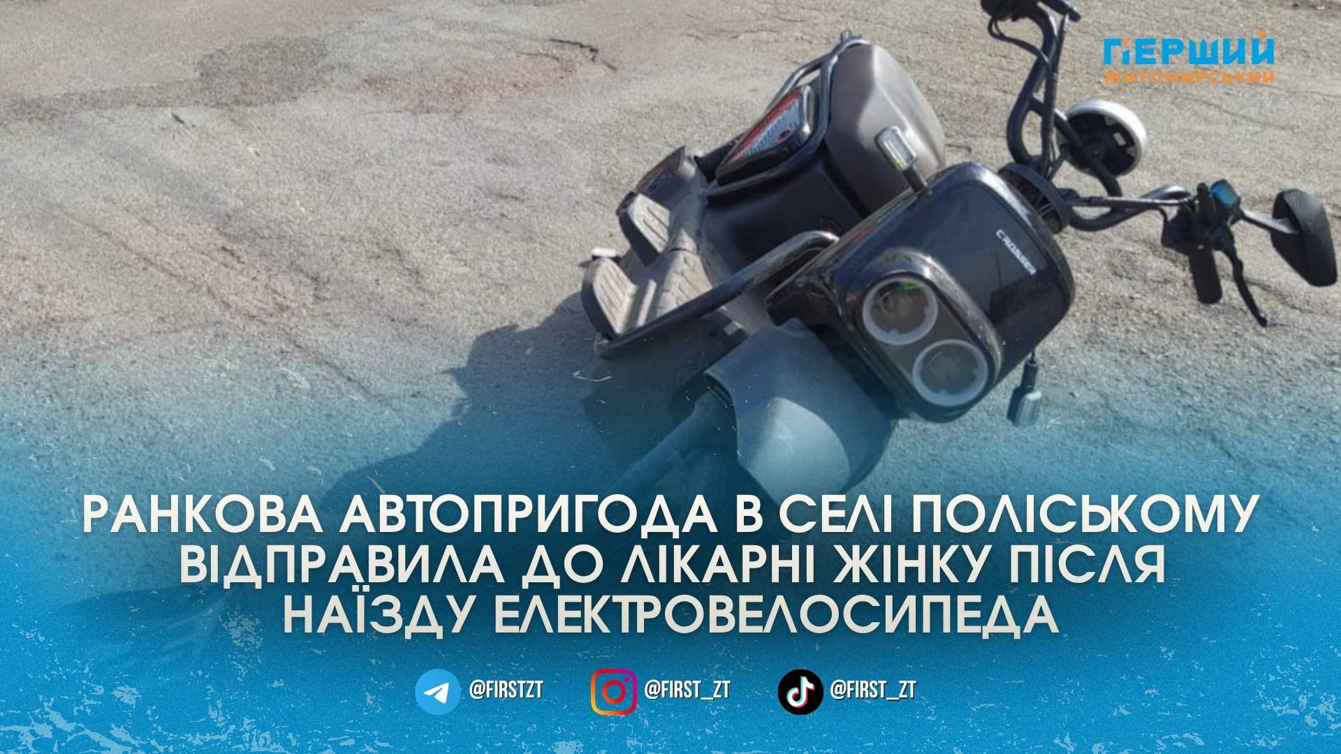 В Ушомирській громаді, в Поліському, сталася дорожньо-транспортна пригода за участю електровелосипеда та пішохідки. Унаслідок зіткнення 44-річна жінка опинилася на лікарняному ліжку.