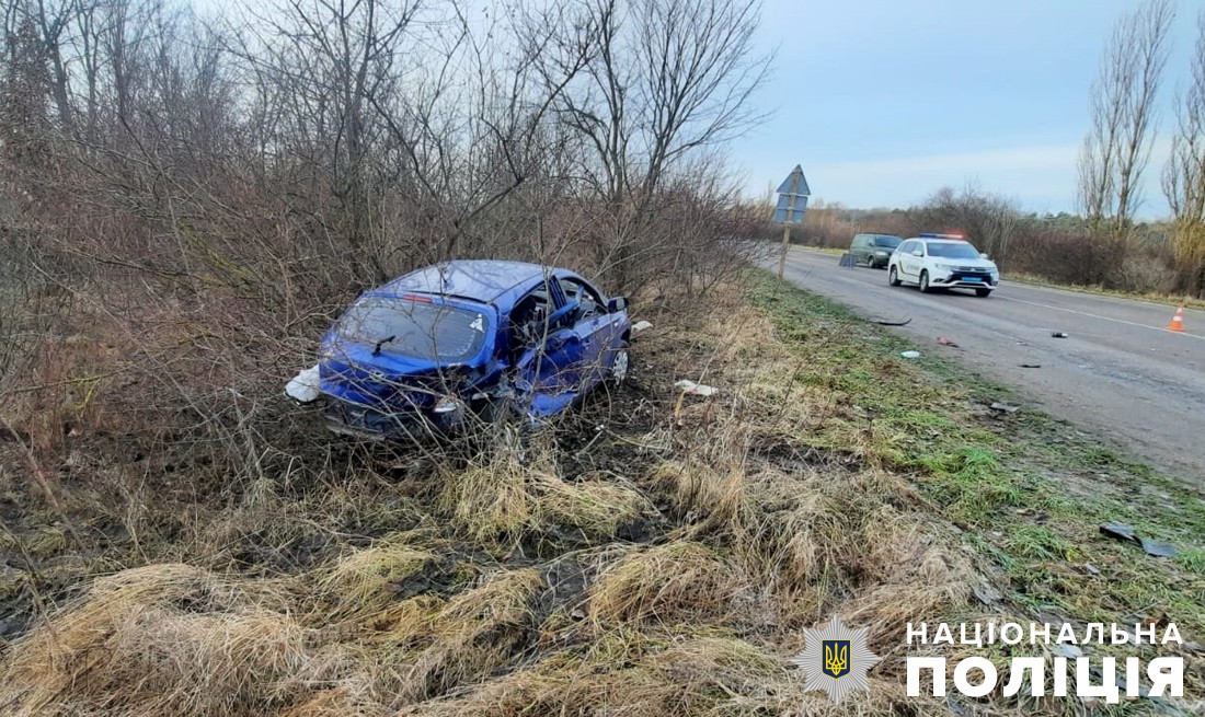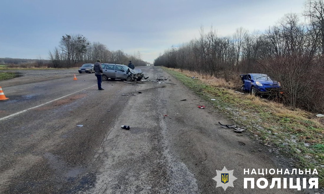 “Попередньо, водійка автомобіля “Hyundai”, 37-річна жителька м. Києва, рухаючись у напрямку м. Хмільника, не вибрала безпечну швидкість руху, не впоралась з керуванням та виїхала на смугу зустрічного руху. Там сталося зіткнення з автомобілем “ВАЗ-2111402″ під керуванням 44-річного жителя Житомирського району. Після зіткнення іномарка виїхала за межі дорожнього полотна та потрапила у кювет”, – повідомляють у нацполіції Житомирщини.