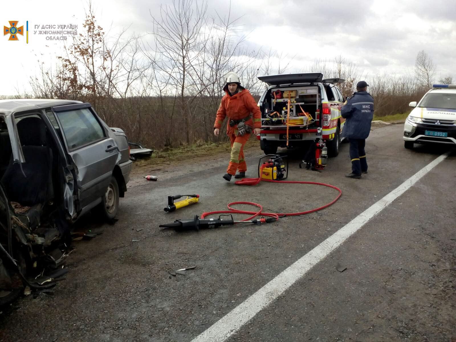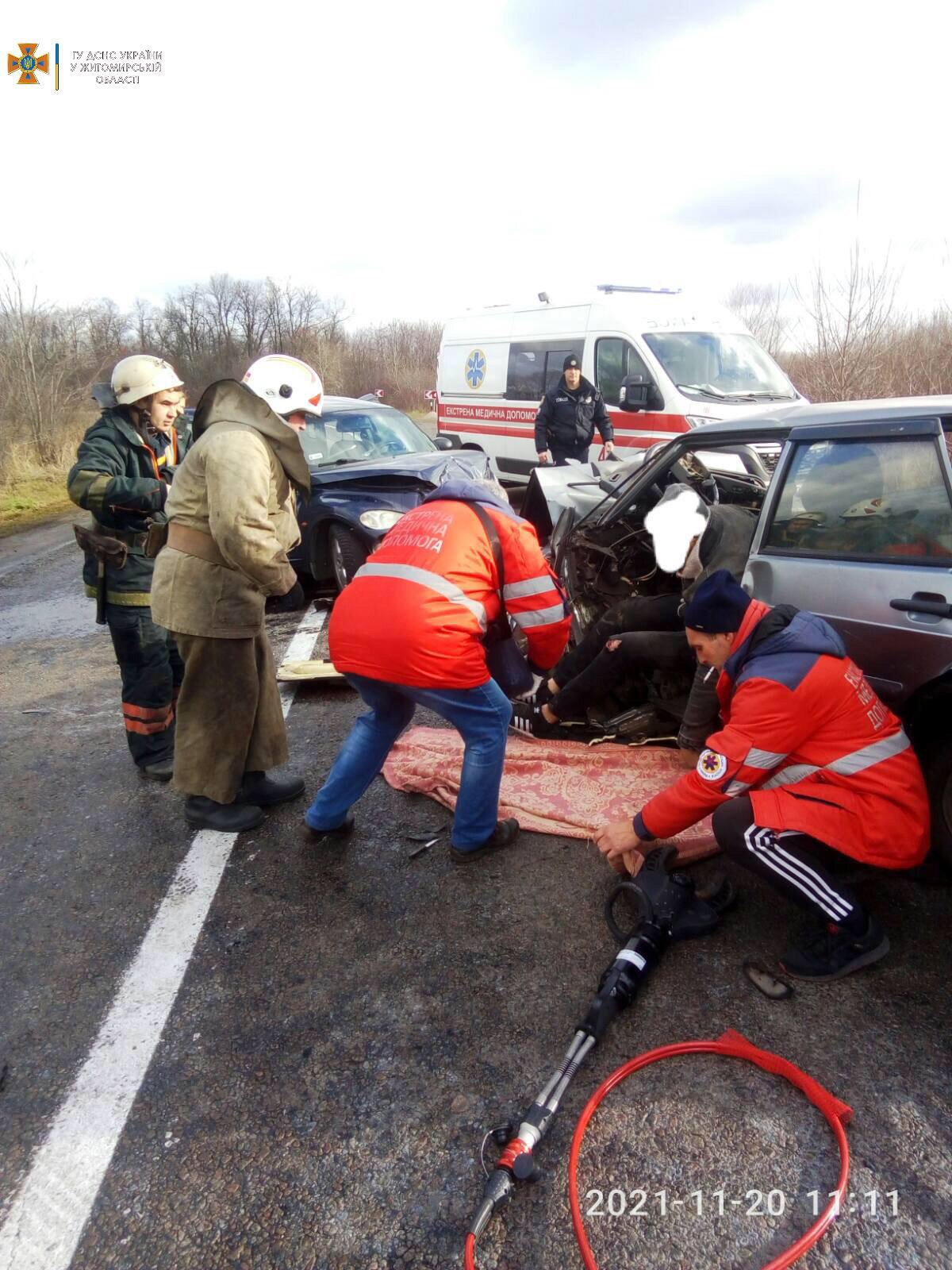 «Бійці ДСНС, які прибули до місця виклику, з’ясували, що на дорозі зіштовхнулися два автомобілі. За допомогою гідравлічного інструменту рятувальники вивільнили 41-річного водія легкового автомобіля «ВАЗ-2114».