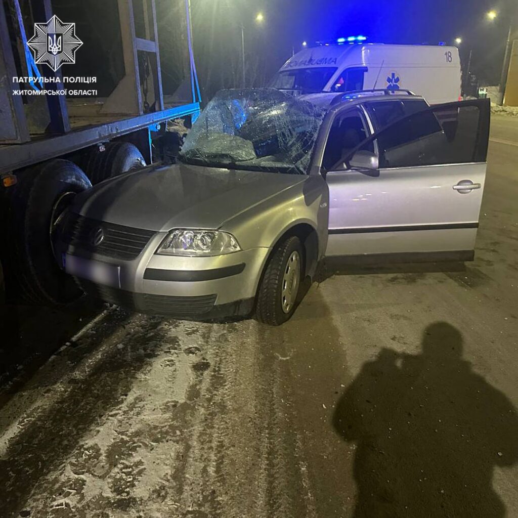 Як повідомили в Патрульній поліції Житомирської області, водій автомобіля Volkswagen не був уважним, не дотримався безпечної швидкості руху та наїхав на припаркований напівпричіп.