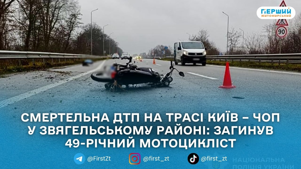 За попередньою інформацією, відбулося зіткнення автомобіля Volkswagen під керуванням 52-річного жителя Житомира та мотоцикла Musstang, яким керував 49-річний житель Звягеля.
