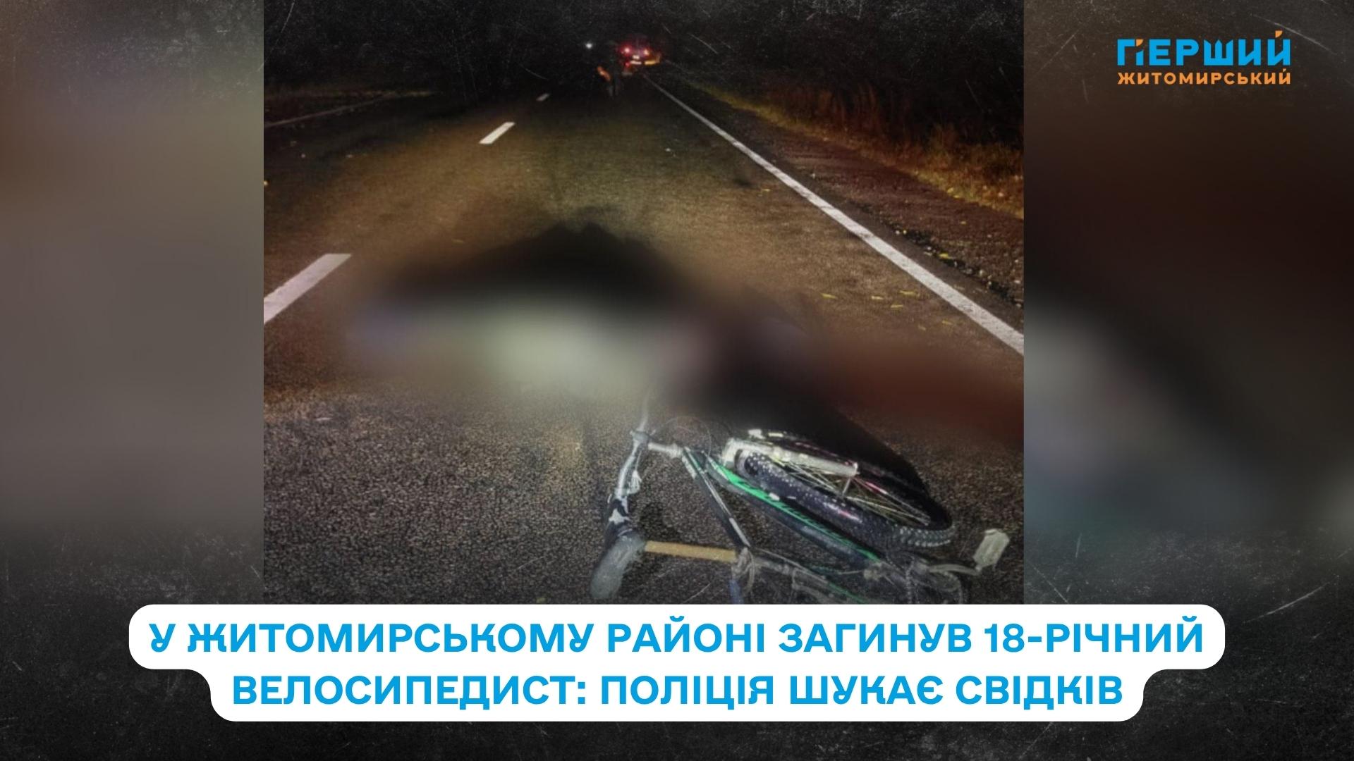 25 жовтня, Житомирський район. Близько 00:35 неподалік смт Черняхів випадкові очевидці виявили на дорозі 18-річного місцевого жителя без ознак життя. Поруч знаходився велосипед, на якому, ймовірно, рухався загиблий. На місці працювала слідчо-оперативна група Житомирського РУП №1.