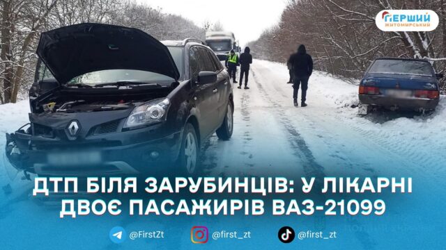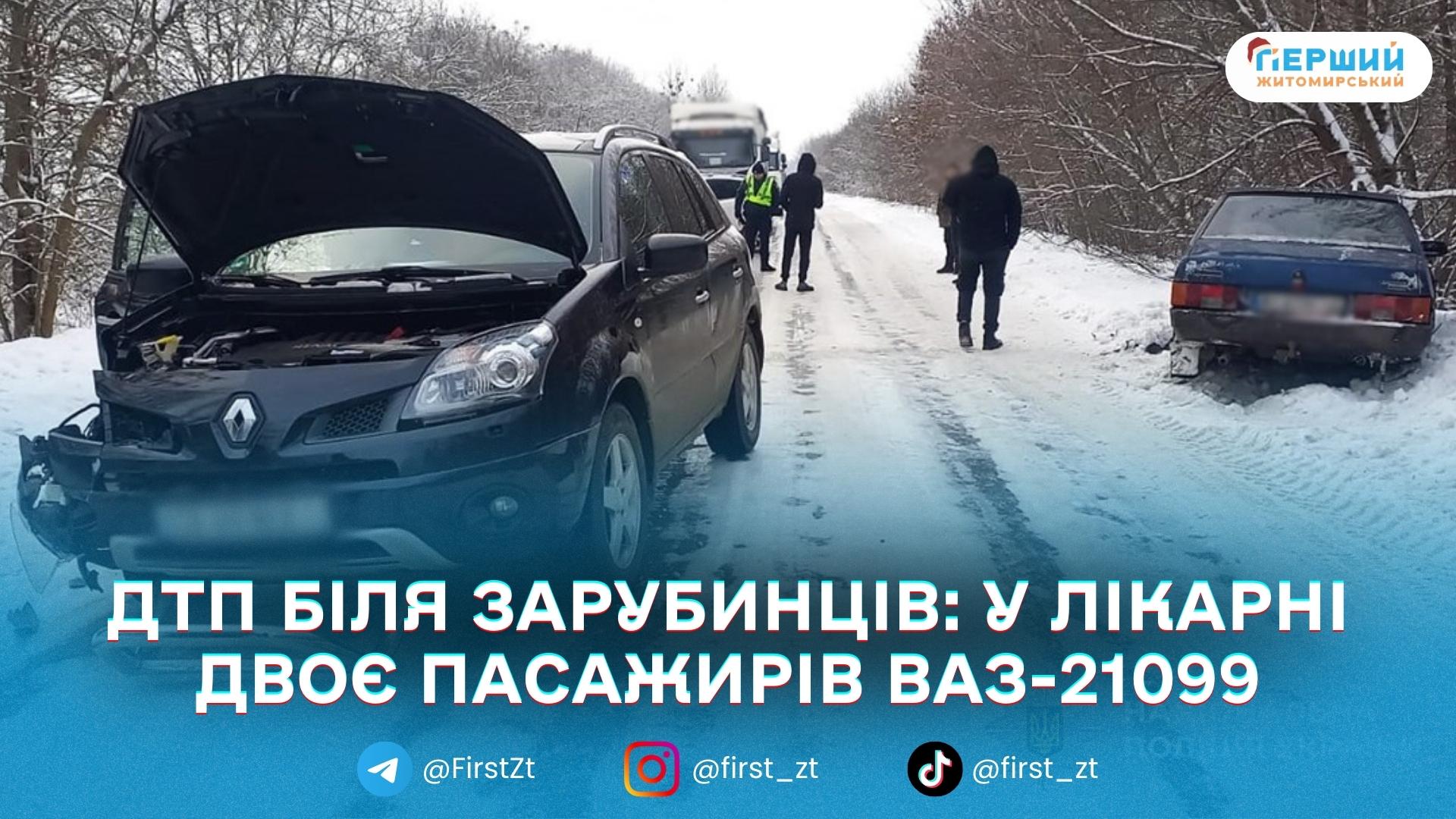 У Бердичівському районі внаслідок ДТП травмувалися двоє пасажирів. Аварія сталася 15 січня близько 13:45 поблизу села Зарубинці Андрушівської громади.