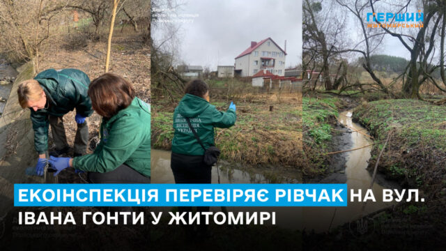 Державна екологічна інспекція Поліського округу досліджує можливе забруднення рівчака у Житомирі, що впадає у річку Тетерів. Воду відібрали для лабораторного аналізу після скарг місцевих жителів.