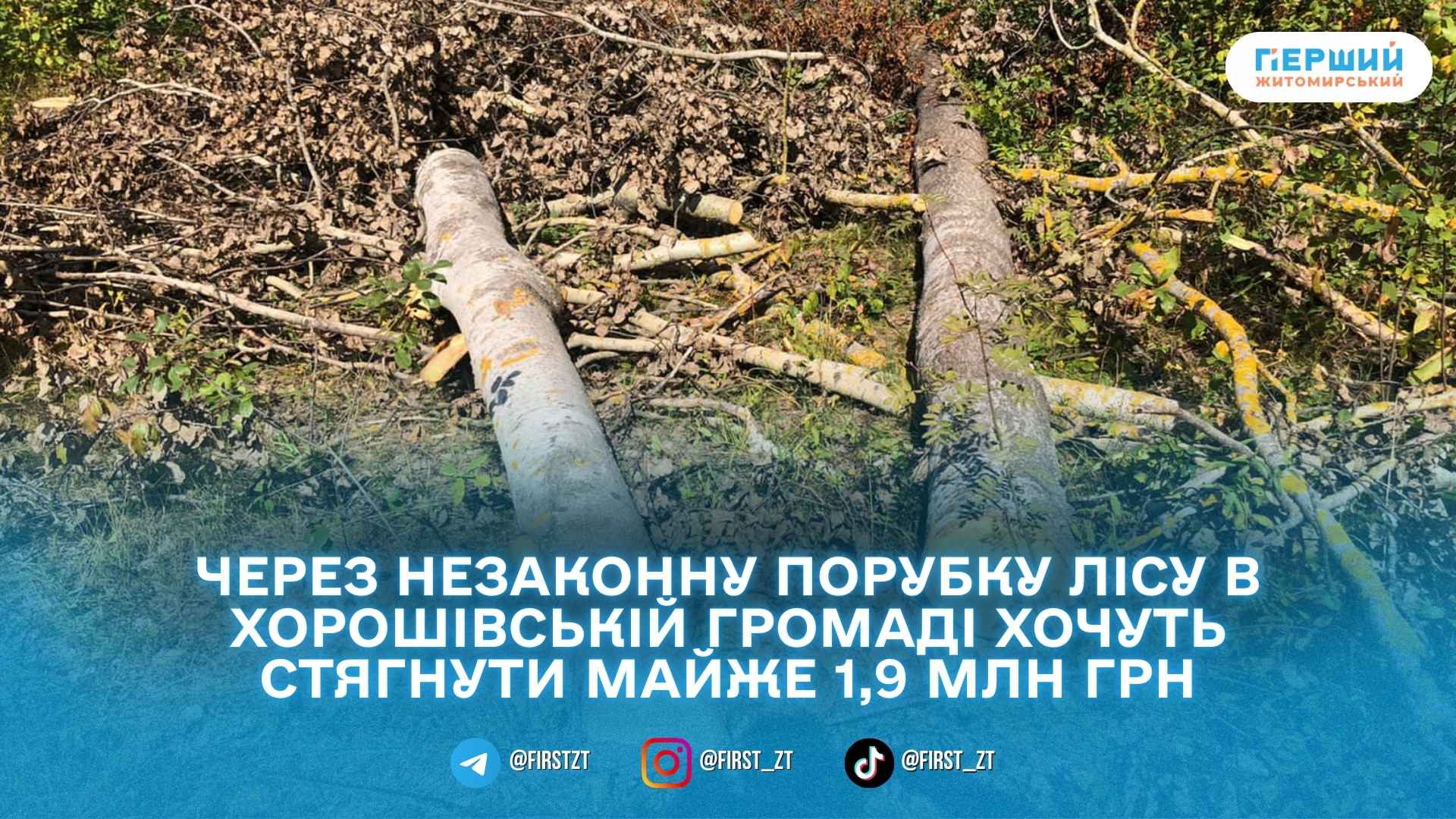 Державна екологічна інспекція Поліського округу звернулася до Господарського суду Житомирської області з позовом про стягнення 1 890 887,94 грн збитків за незаконну порубку лісу в Хорошівській громаді. Про це повідомили в ДЕІ Поліського округу.