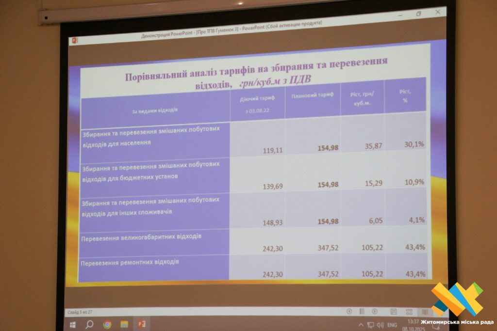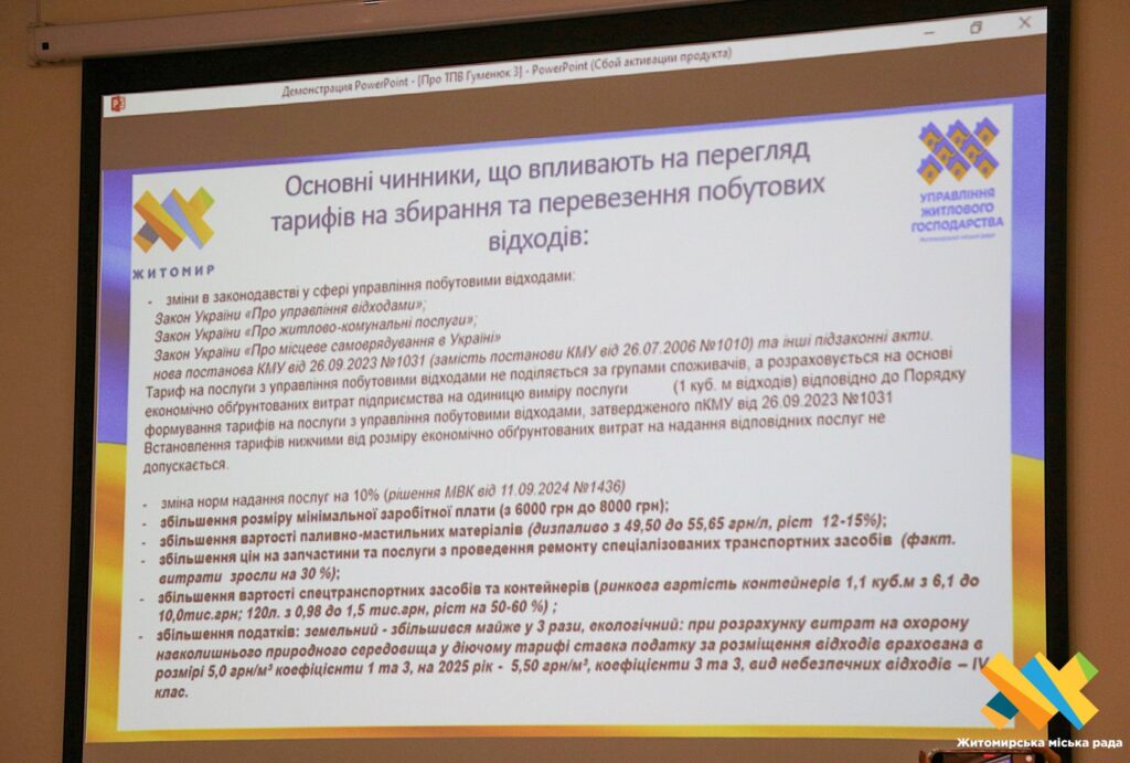 Остаточне рішення про підвищення тарифу на вивіз сміття у Житомирі ухвалюватиме виконавчий комітет міської ради.