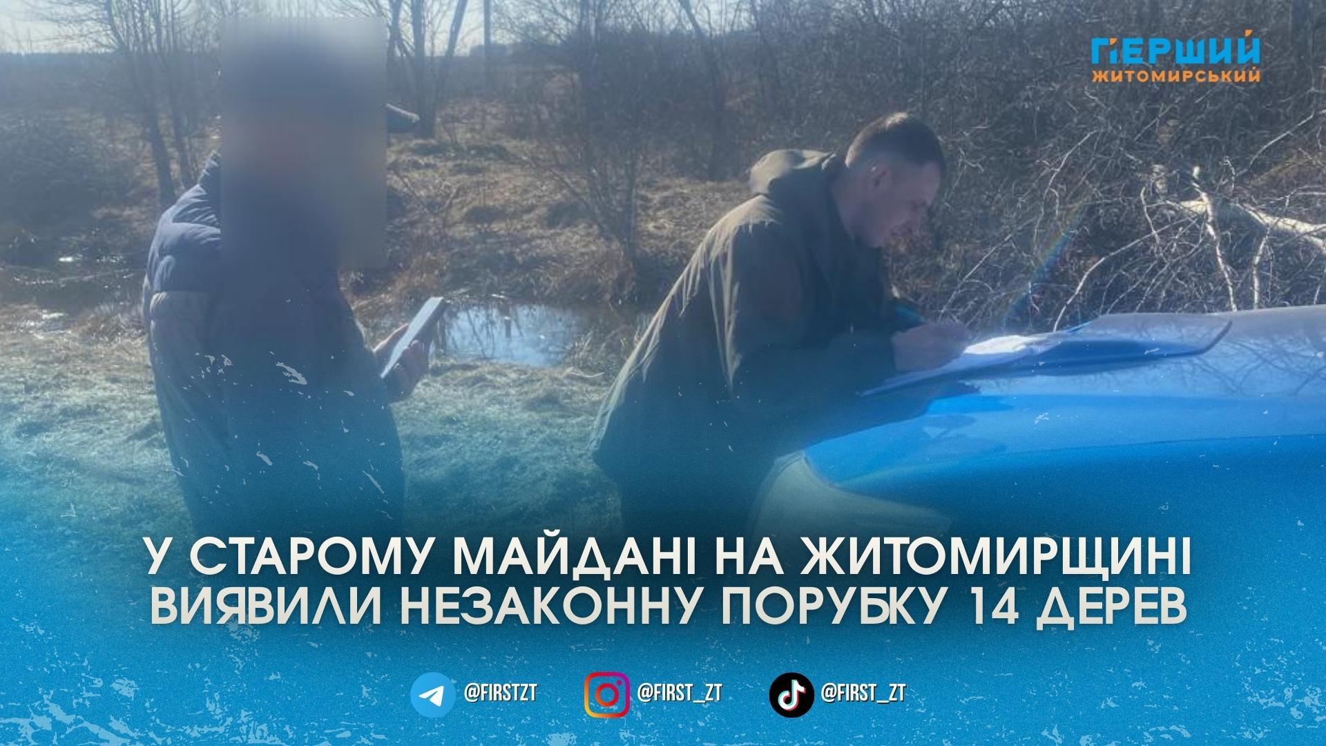 У селі Старий Майдан Житомирського району завдяки зверненню небайдужих громадян вдалося виявити факт незаконного нищення дерев. Як повідомили у Державній екологічній інспекції Поліського округу, перевірку провели після дзвінка на «гарячу лінію». Прибувши на місце події, екоінспектори зафіксували самовільну порубку 14 дерев різних порід, на які у виконавців не було жодних дозвільних документів чи спеціальних ордерів.