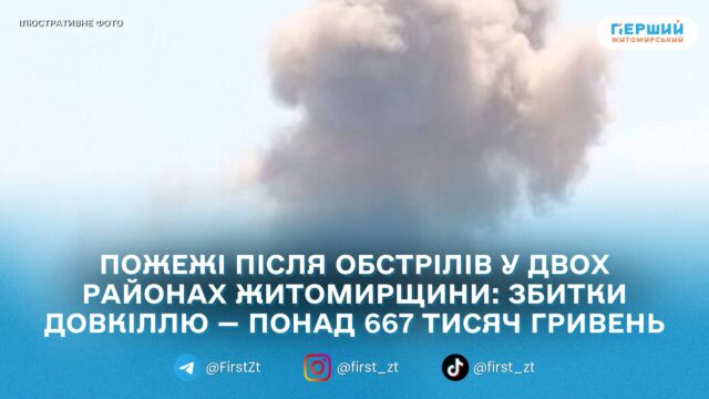Державна екологічна інспекція Поліського округу здійснила розрахунок шкоди, завданої атмосферному повітрю неорганізованими викидами забруднюючих речовин унаслідок пожеж після російських обстрілів Коростенського та Звягельського районів 11, 12 і 13 січня 2026 року.