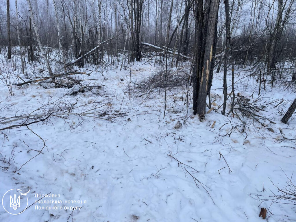 У Хорошівській громаді зафіксували факт незаконної порубки дерев за межами села Грабівка. Як повідомили в Держекоінспекції Поліського округу, 26 січня 2026 року спеціалісти виїхали на місце за матеріалами поліції.
