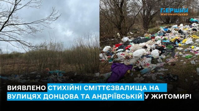 Стихійні сміттєзвалища знову зафіксовані у Житомирі. Під час рейду 1 квітня державні інспектори з охорони навколишнього природного середовища Поліського округу виявили незаконне скупчення відходів по вулиці Дмитра Донцова. Крім того, на Андріївській – де раніше вже були виявлені порушення – підтверджено наявність трьох стихійних сміттєзвалищ.