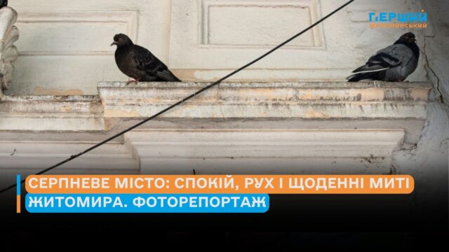 Місто живе в деталях: у погляді водійки тролейбуса, що веде транспорт крізь спеку. У кроках перехожих на свіжо пофарбованому переході. У голубах на фасаді старої будівлі. У лагідному обіймі родини на вулиці. Поки одні ремонтують дахи, інші — знаходять тінь і спокій у парку в компанії вуличних котів. Це — Житомир. Такий, яким ми його бачимо щодня, але не завжди помічаємо.