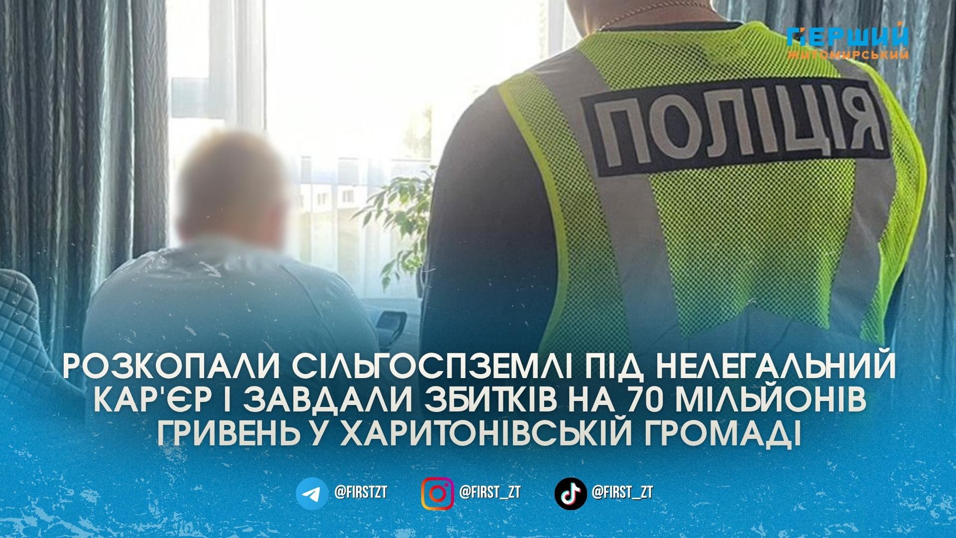 У Харитонівській громаді Житомирського району троє комерсантів незаконно розширили свій легальний кар’єр на сусідні сільськогосподарські землі та масово вивозили звідти пісок.