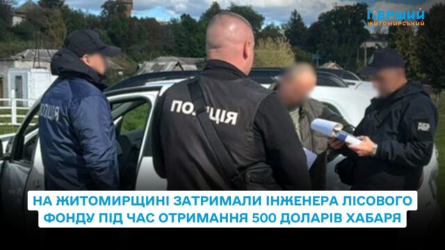 25 вересня оперативники регіонального управління стратегічних розслідувань та міграційної поліції Житомирської області затримали інженера державного лісового підприємства під час передачі йому 500 доларів США. За даними поліції, посадовець систематично вимагав гроші від місцевого підприємця.