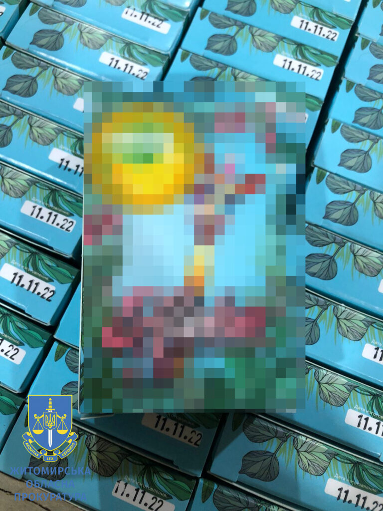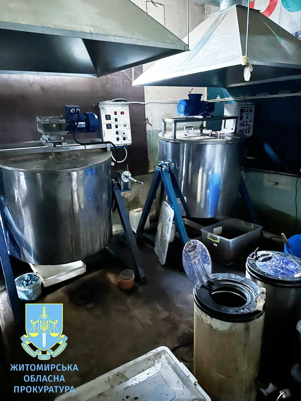 50-річний організатор злочинного угруповання для кустарного виробництва орендував у Житомирі декілька приміщень. В окремих встановили спецобладнання, інші використовували як склади для готової продукції. На нелегальній «фабриці» було задіяно понад десяток працівників. Використовували імпортну сировину, яку ввозили з-за кордону.