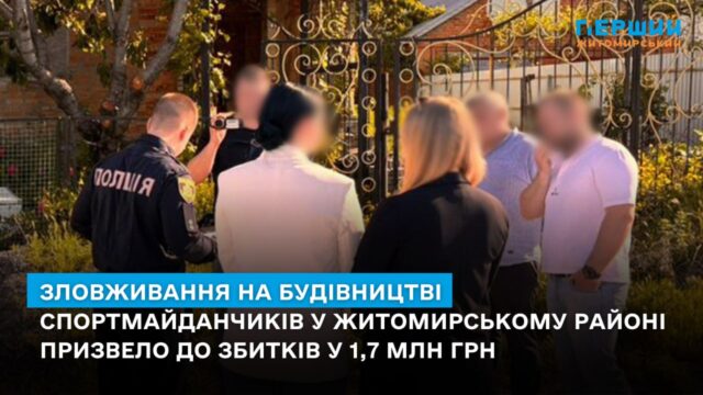 Слідчі Житомирського райуправління поліції повідомили про підозру трьом особам, причетним до зловживань під час будівництва спортивних майданчиків у Житомирському районі. Йдеться про колишнього директора підрядної організації, інженера з технагляду та посадовицю селищної ради. Про це 12 червня поінформувало ГУНП у Житомирській області.