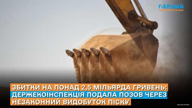 Держекоінспекція Поліського округу подала цивільний позов у межах кримінального провадження щодо стягнення понад 2,5 млрд грн збитків, завданих довкіллю незаконним видобутком піску на території Житомирської області.