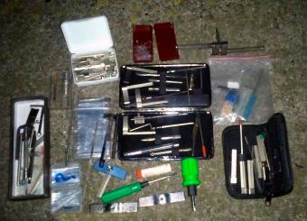 – Затримувати старшого з підозрюваних довелося на вулиці, коли він знаходився в автомобілі таксі, – розповідає начальник Житомирського відділу поліції Михайло Сорока. – Правоохоронці зупинили транспортний засіб. Під час огляду в рюкзаку пасажира виявили спеціальні відмички, заготовки ключів до різних типів замків та пристосування для проникнення до приміщень. Також було вилучено 2 гранати: РГД-5 із запалом, за попередніми даними – бойову, та Ф-1, учбову. Там же чоловік перевозив і кілька набоїв калібру 7,62 та 8 мм.