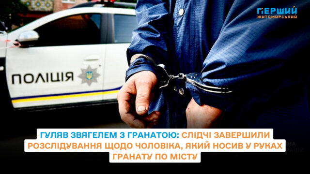 У Звягелі завершили досудове розслідування щодо 32-річного місцевого жителя, якого влітку поліцейські затримали у центрі міста з гранатою в руках. Про це повідомили в Головному управлінні Національної поліції в Житомирській області.