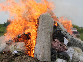 Як палає наркосировина та засоби, спостерігала спеціально створена комісія, до складу якої традиційно увійшли представники органів внутрішніх справ, прокуратури, Служби безпеки України та виконавчої служби.