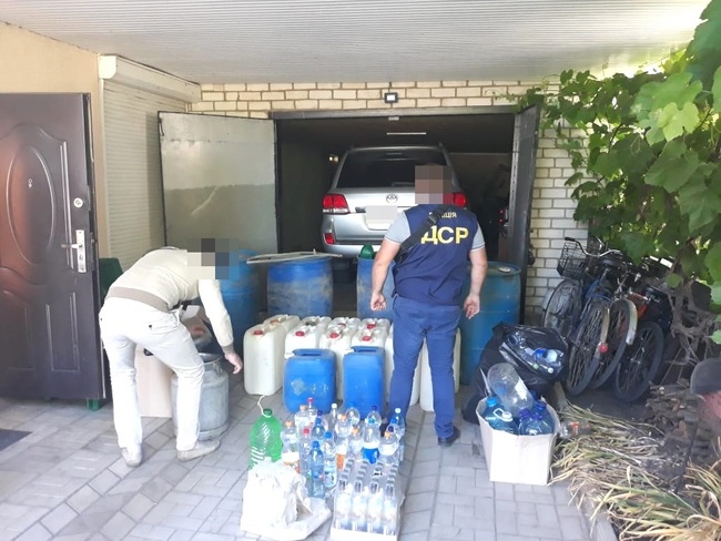 Під час обшуків виявлено та вилучено майже 1000 літрів спирту етилового, що зберігався у ємкостях різного об’єму, ящик готової горілчаної продукції сумнівної якості та чорнову бухгалтерію.