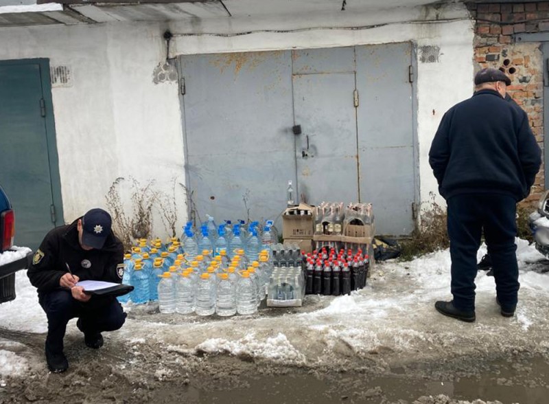 Чоловік у власному гаражі нелегально продавав алкоголь без марок акцизного податку. Поліціянти знайшли у 63-річного пенсіонера пів тони алкоголю.