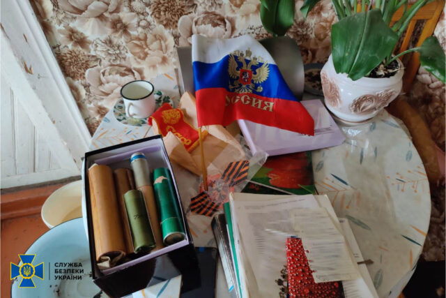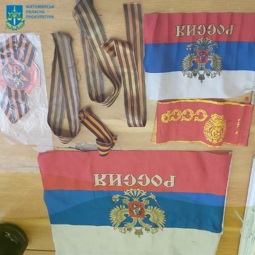 Під час досудового розслідування правоохоронці вилучили за місцем проживання одного з фігурантів заборонену символіку країни-агресора.